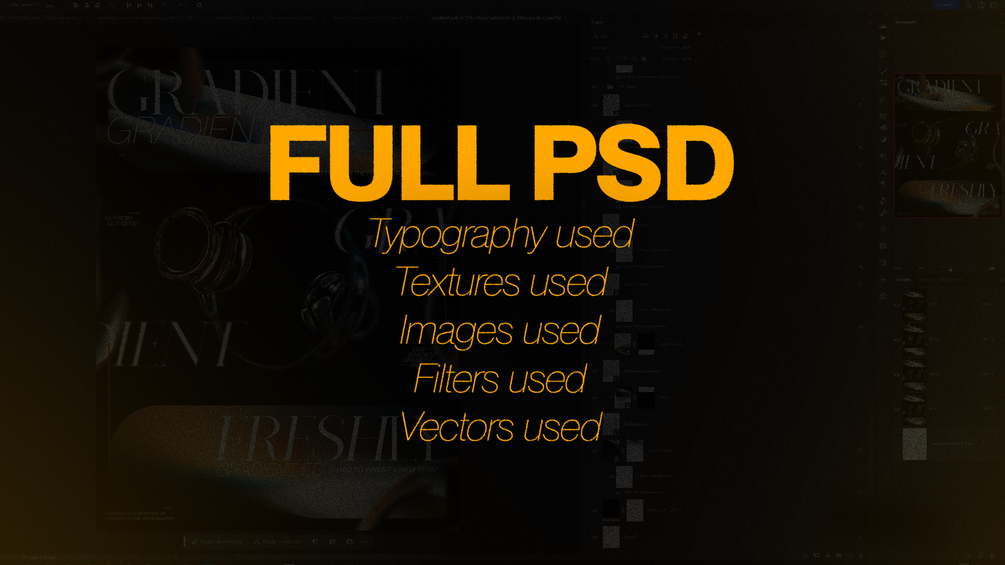 By purchasing this product, you’ll gain access to 3 PSD files of my "3D" poster designs. The PSDs include all the objects and settings used in the original design, including the typography and images. Feel free to explore and tweak the configurations, gradients, filters, and textures as you wish.