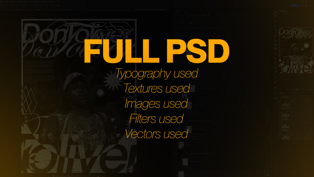 By purchasing this product, you’ll gain access to the PSD file of my Don Toliver – “Volume 6” poster concept. The PSD includes all the objects and settings used in the original design, including the typography and images. Feel free to explore and tweak the configurations, gradients, filters, and textures as you wish.